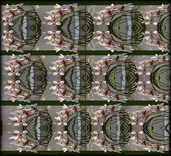 By way of comparison, I made this page's background a variation of the image--without the stereoscopic effect. Comparatively, the background's flowers and leaves are stretched flat over their stereogramic substrate. Scroll below this box to see background stereo-tile. |